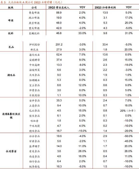 大众品方面,招商证券判断板块间Q3表现相对分化。其中零食饮料延续全年相对较好的景气度;调味品、餐饮供应链、啤酒等受餐饮景气度影响仍相对平淡,乳制品中常温液奶动销依然较弱。